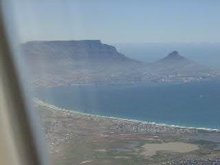 Im Anflug auf Kapstadt hatten wir genau die richtigen Plätze reserviert. Leider waren wir just in dem Moment mit einem Totalausfall unserer 2 Digitalkameras gesegnet (1 x Akku, 1 x technischer Ausfall), so dass nur dieses Foto existiert.