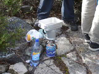 Etwa 2 Stunden und 4 Kilometer später hatten wir dann den 611 Meter hohen Berg erklommen und konnten uns erstmal einen Kaffee kochen. Der Anstieg von 50 auf 611 Meter war der stärkste der ganzen Wanderung, und mit 611 Metern hatten wir neben dem höchsten Punkt unseres Trips auch einen schönen Aussichtspunkt und Cellphone reception errreicht.